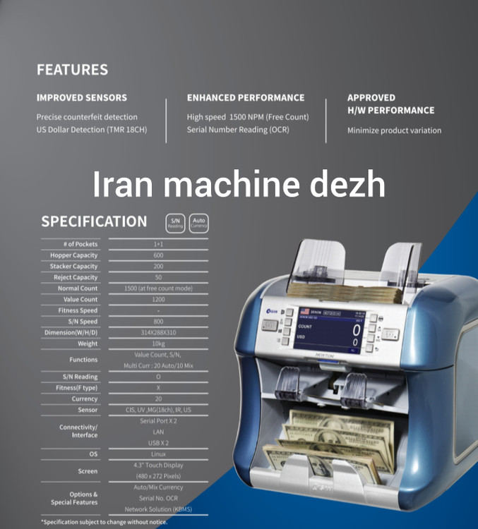 - **سرعت شمارش 1200 برگ در دقیقه**: مناسب برای محیطهای با حجم کاری بالا.